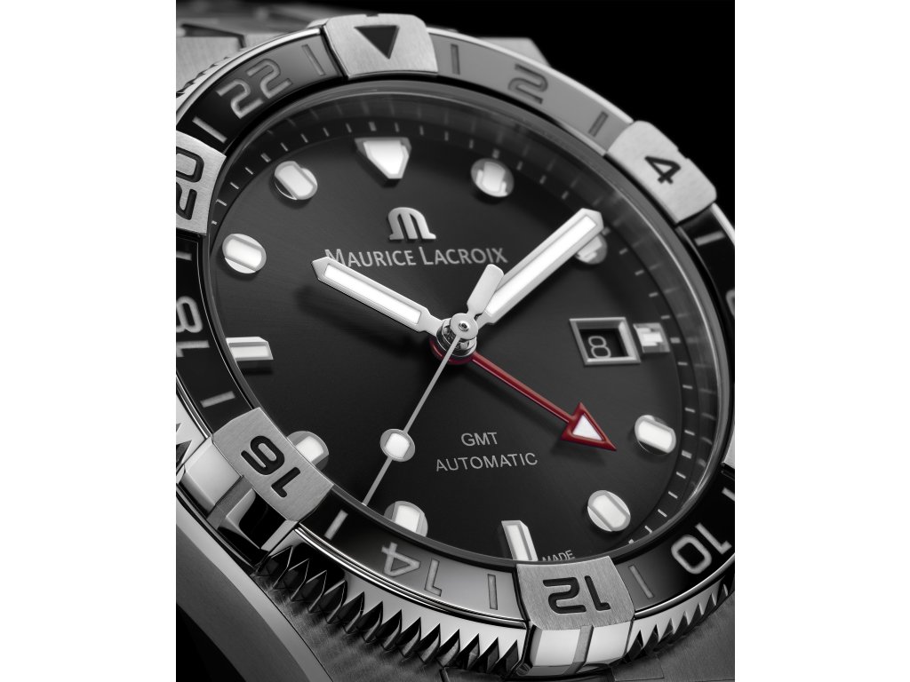 GMT model AIKON Venturer zaujme na první pohled svou keramickou lunetou s typickým zdobením Aikon. Pokud se často přesouváte mezi časovými pásmy, oceníte možnost nastavení druhé časové zóny.