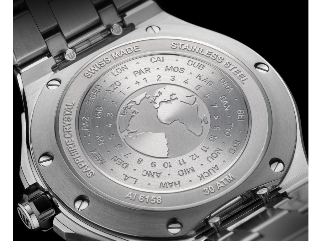GMT model AIKON Venturer zaujme na první pohled svou keramickou lunetou s typickým zdobením Aikon. Pokud se často přesouváte mezi časovými pásmy, oceníte možnost nastavení druhé časové zóny.
