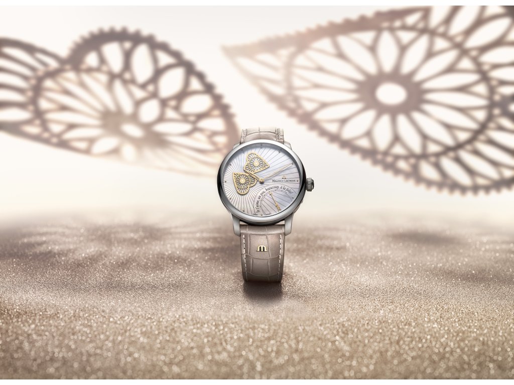Na první pohled upoutá indikace sekund pomocí dvou srdcí zaklesnutých do sebe. Každý zub má svůj vlastní profil, který zapadá do svého sousedního protějšku s dokonalou přesností. Dvě srdce se tak otáčejí ve věčném obětí. V poetickém zpracování pokračuje Maurice Lacroix retrográdní stupnicí rezervy chodu.