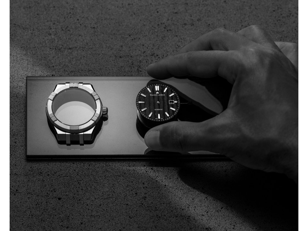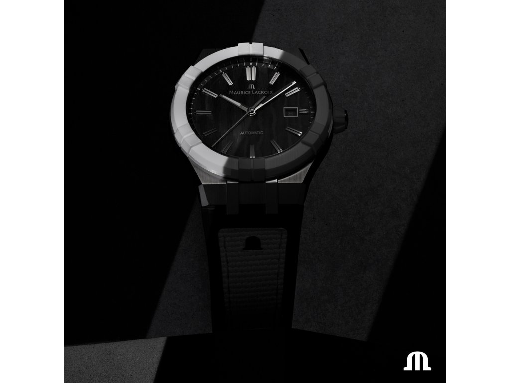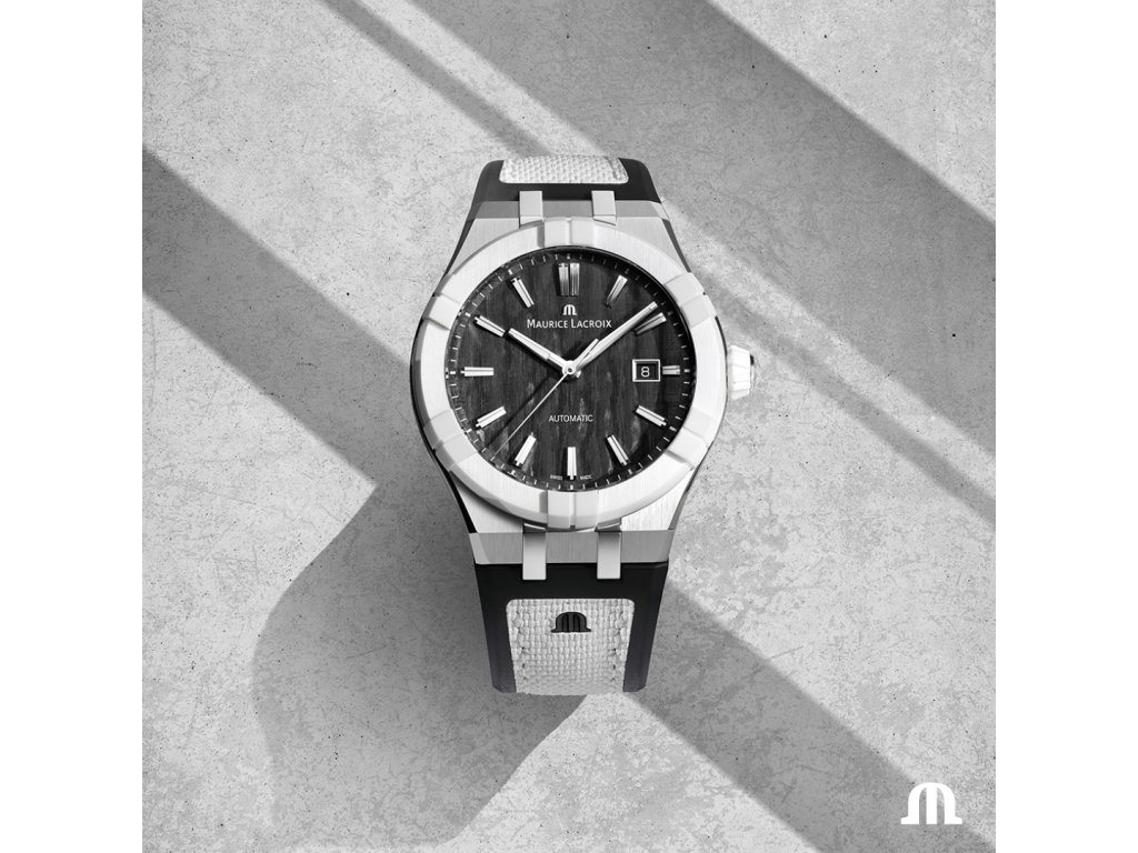 Výrazným prvkem nových švýcarských hodinek AIKONIC je karbonový číselník. Pozornost okamžitě upoutá netypické uspořádání karbonových vláken. Většina karbonových struktur je tvořena propletenými prameny uhlíkových vláken uspořádaných do čtverečkovaného vzoru. Karbonový ciferník AIKONIC však obsahuje četná vlákna směřující od severu k jihu jedním směrem, což působí jako šedé a černé čáry. V rámci výrobního procesu se uspořádání uhlíkových vláken vždy mírně liší, proto má každý číselník svůj vlastní jedinečný vzhled. Při vytváření tohoto unikátního prvku se značka podívala za hranice hodinářského průmyslu a spolupracovala se specializovanou firmou sídlící přibližně 40 km od Saignelégier, což je v souladu se záměrem ML vytvářet hodinky s výrazným místním propojením.