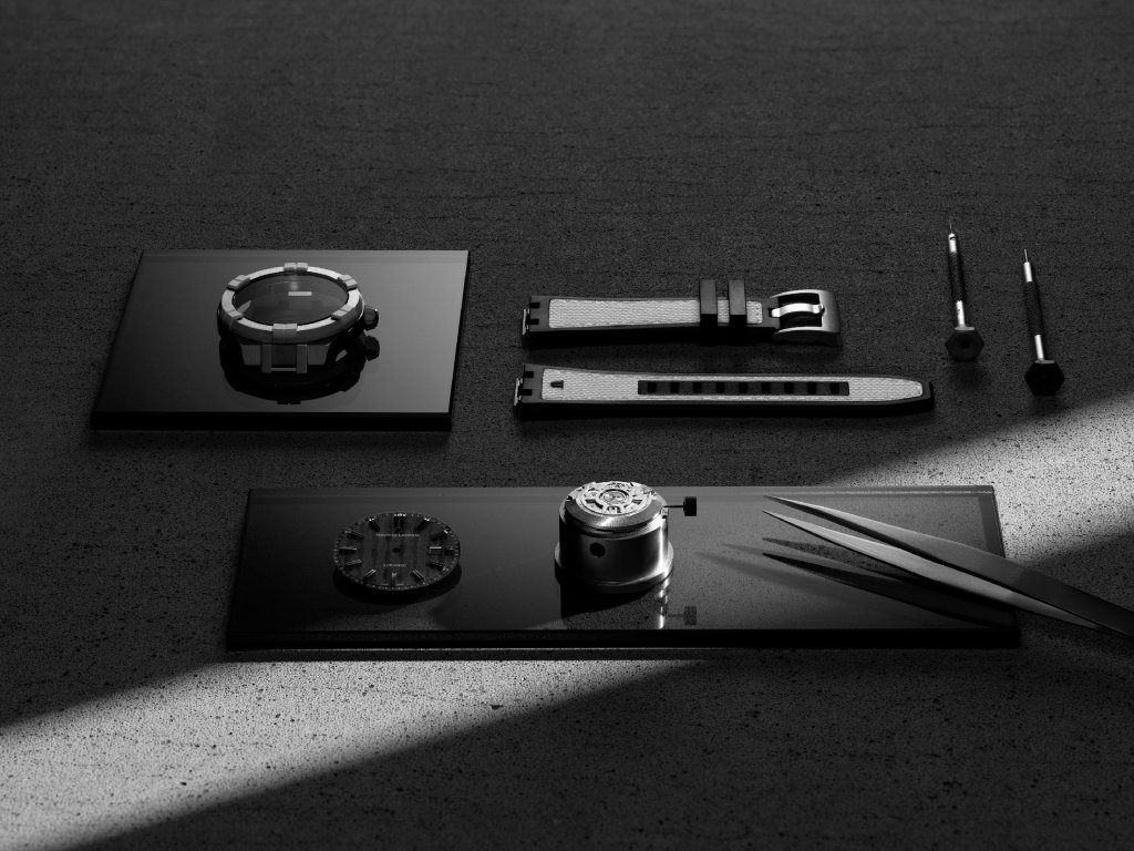 Kromě lunety je pouzdro o průměru 43mm ocelové. Výraznou kombinaci keramiky a oceli zjemňuje prolínání jemně kartáčovaných a leštěných povrchů. Zajímavý efekt a zvýšení celkového vnímání kvality dotváří zkosení hran pouzdra. Dalším kvalitativním prvkem hodinek je použití safírových skel. Spodní umožňuje pohled na výjimečný švýcarský strojek, vrchní chrání originální karbonový číselník. Pro zajištění maximální čitelnosti ciferníku je vrchní safírové sklo opatřeno vylepšenou antireflexní vrstvou aplikovanou z obou stran. Tato úprava nabízí vynikající propustnost světla a zvýšenou odolnost vůči slané vodě.